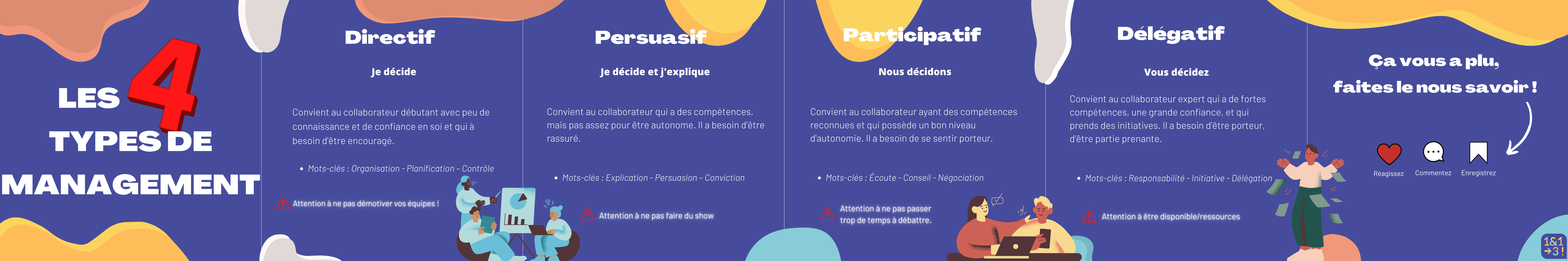 Pour vous aider, on vous a préparé un carrousel avec des questions ouvertes adaptées à 4 types de situations de management.